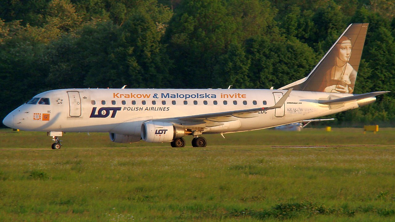 Embraer 170-100SD reg. SP-LDC LOT Polish Airlines Specjalne malowanie 10.2009 - 07.2012 "Krakow & Malopolska invite"