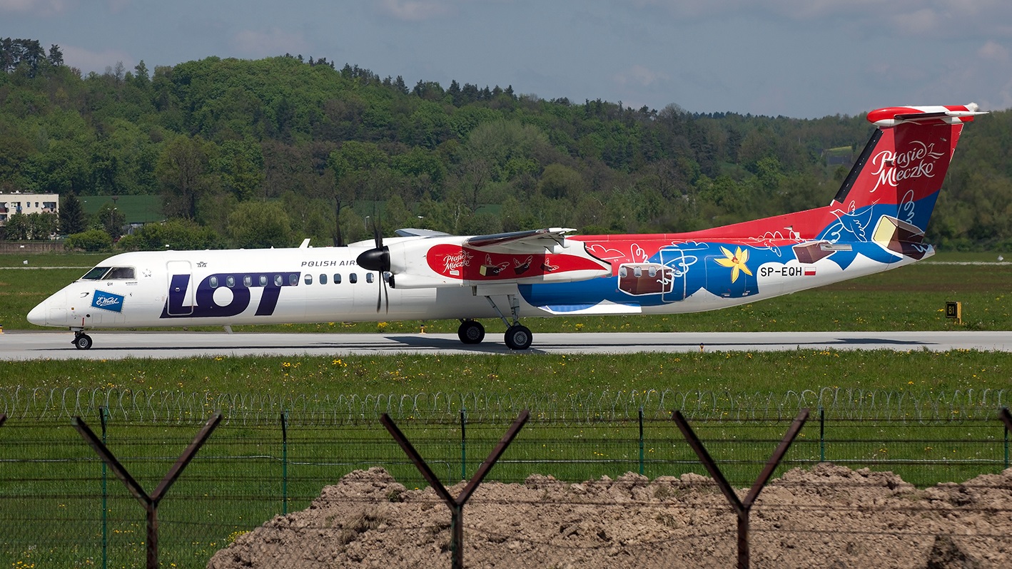 Bombardier Dash 8-Q402NextGen reg. SP-EQH LOT Polish Airlines Specjalne malowanie od 04.2017 - 04.2018 "Ptasie Mleczko"