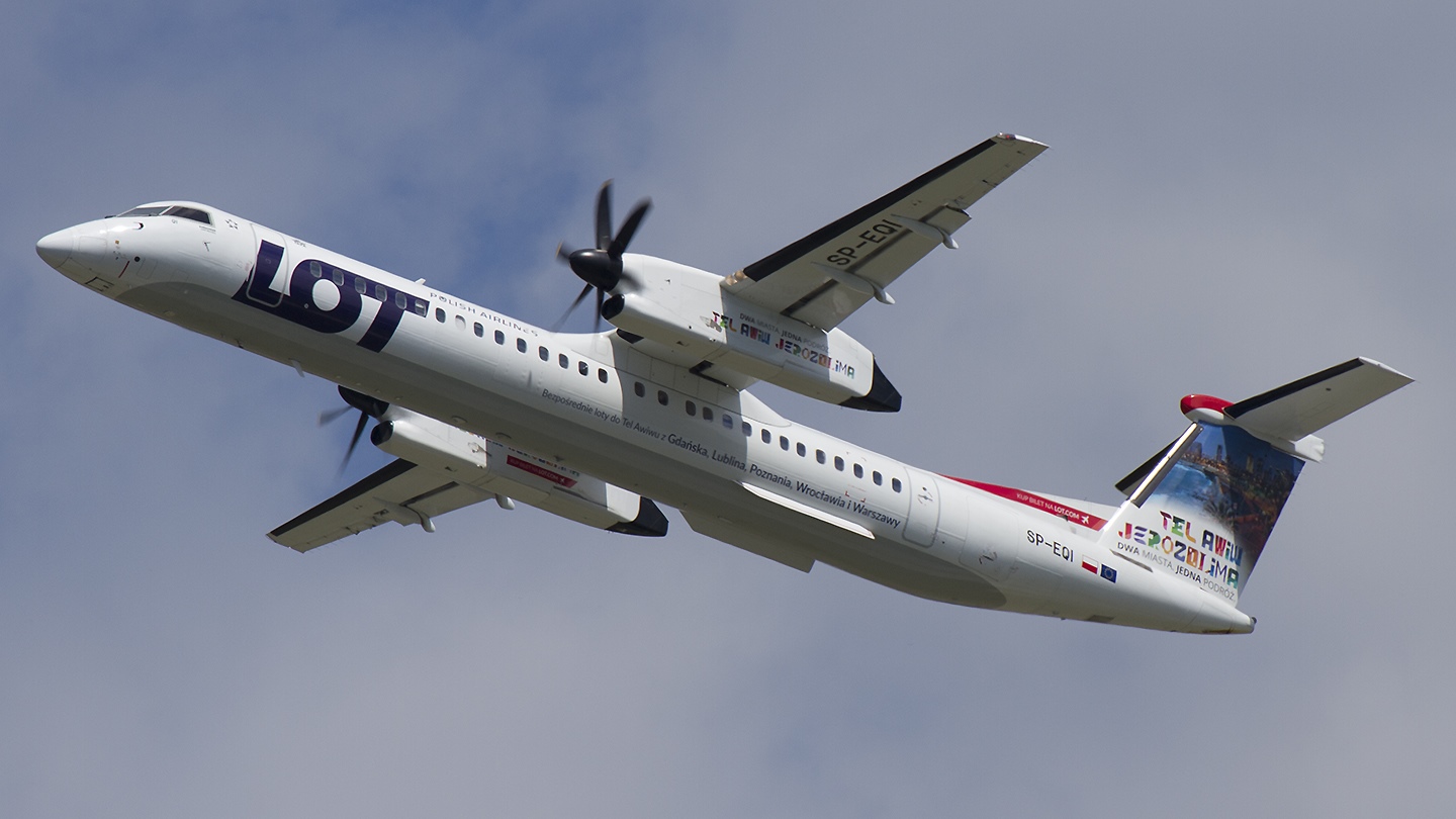 Bombardier Dash 8-Q402NextGen reg. SP-EQI LOT Polish Airlines Specjalne malowanie od 06.2017 - 02.2019 "Tel Aviv"