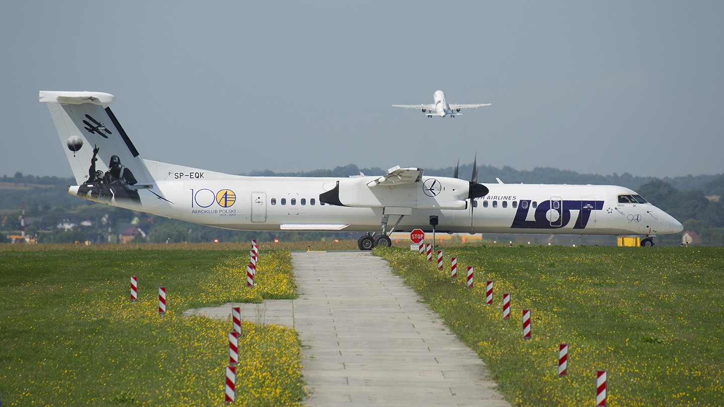 Bombardier Dash 8-Q402NextGen reg. SP-EQK LOT Polish Airlines Specjalne malowanie od 06.2019 "100 lat Aeroklubu Polskiego"
